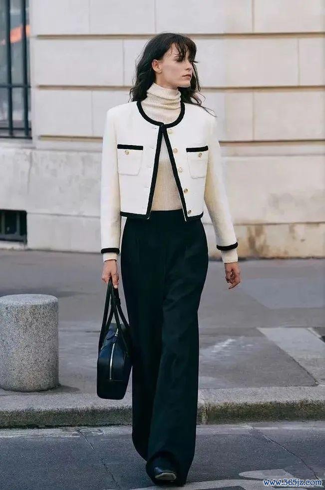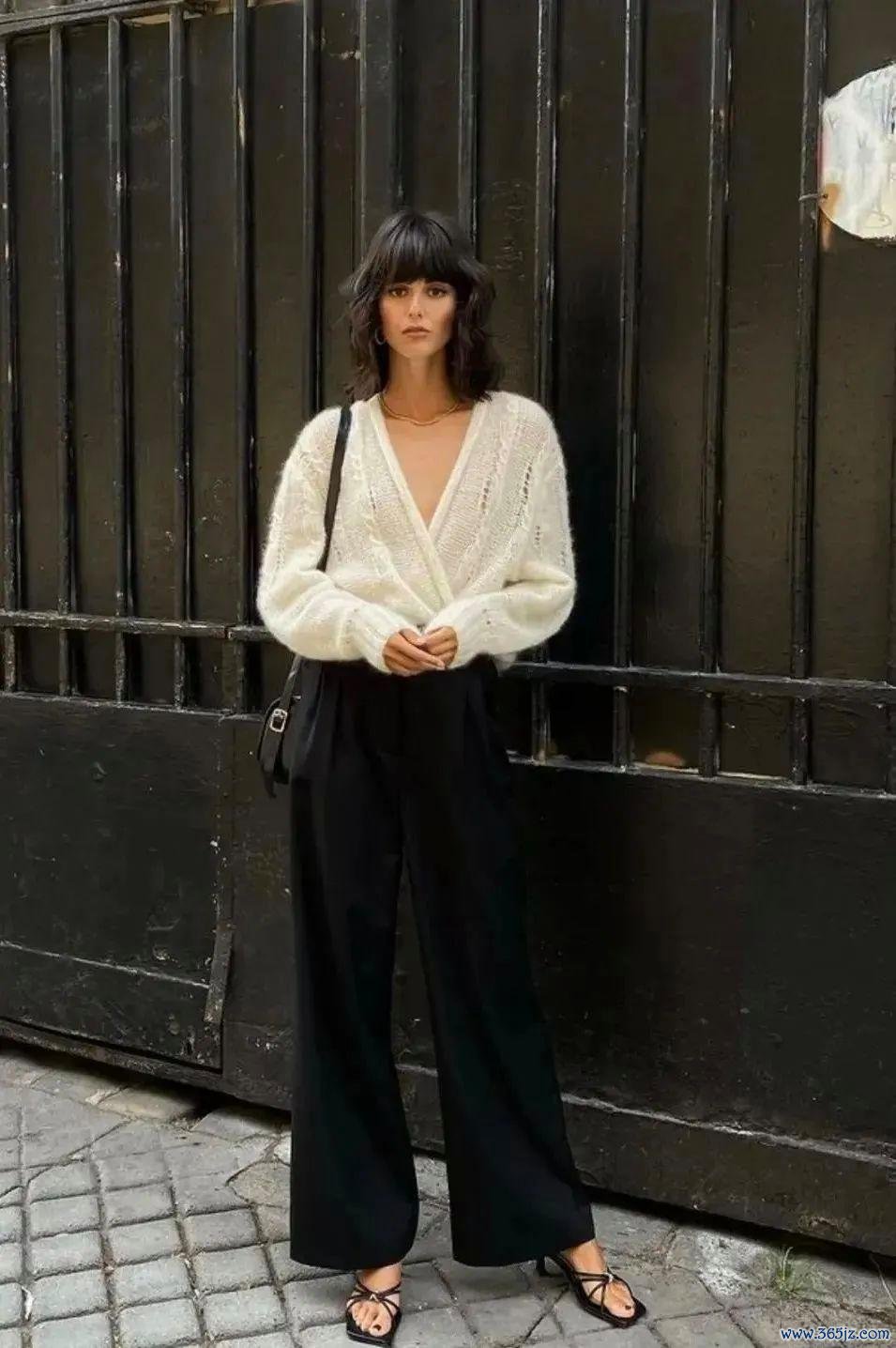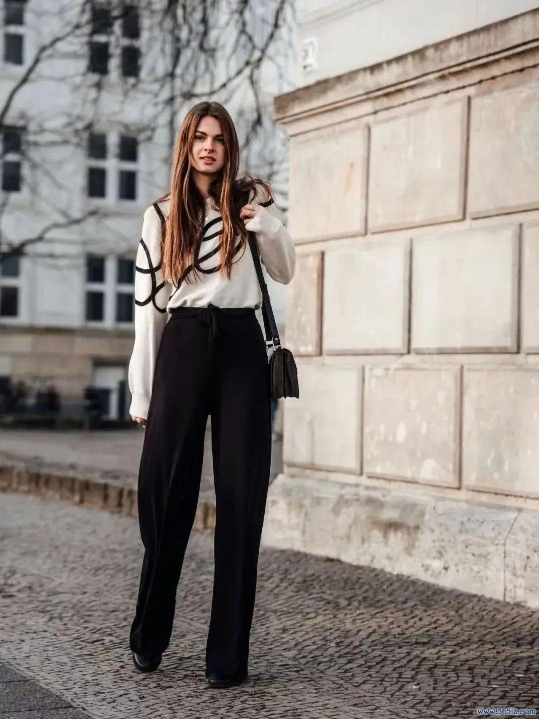 阔腿裤最为百搭,比如配衬衫、配小香风外衣。