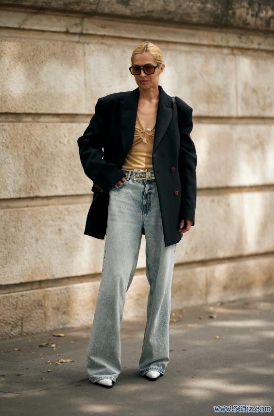 也不错配蓝色牛仔裤,不会过于张扬,也不会显得千里闷。