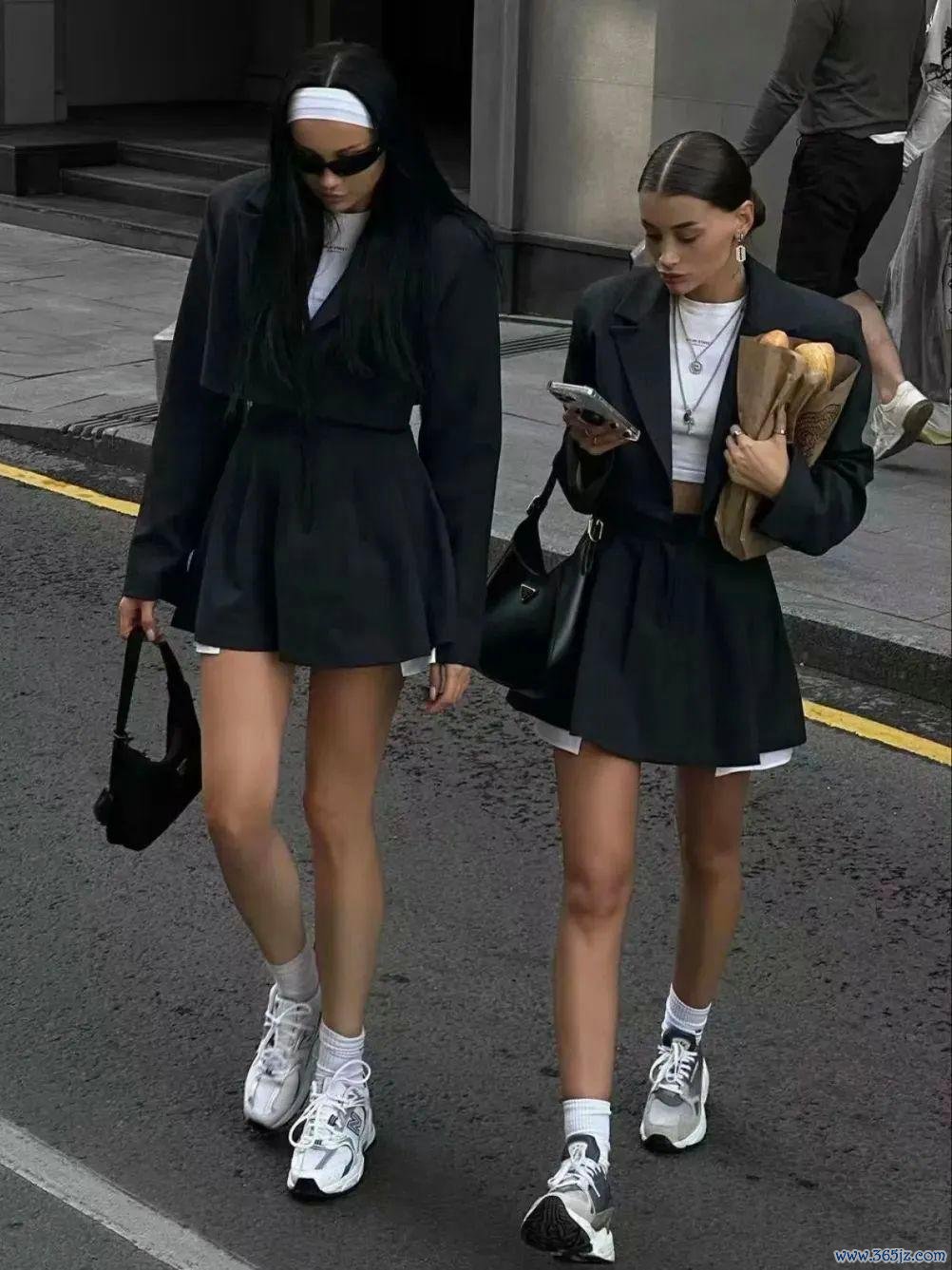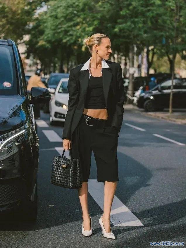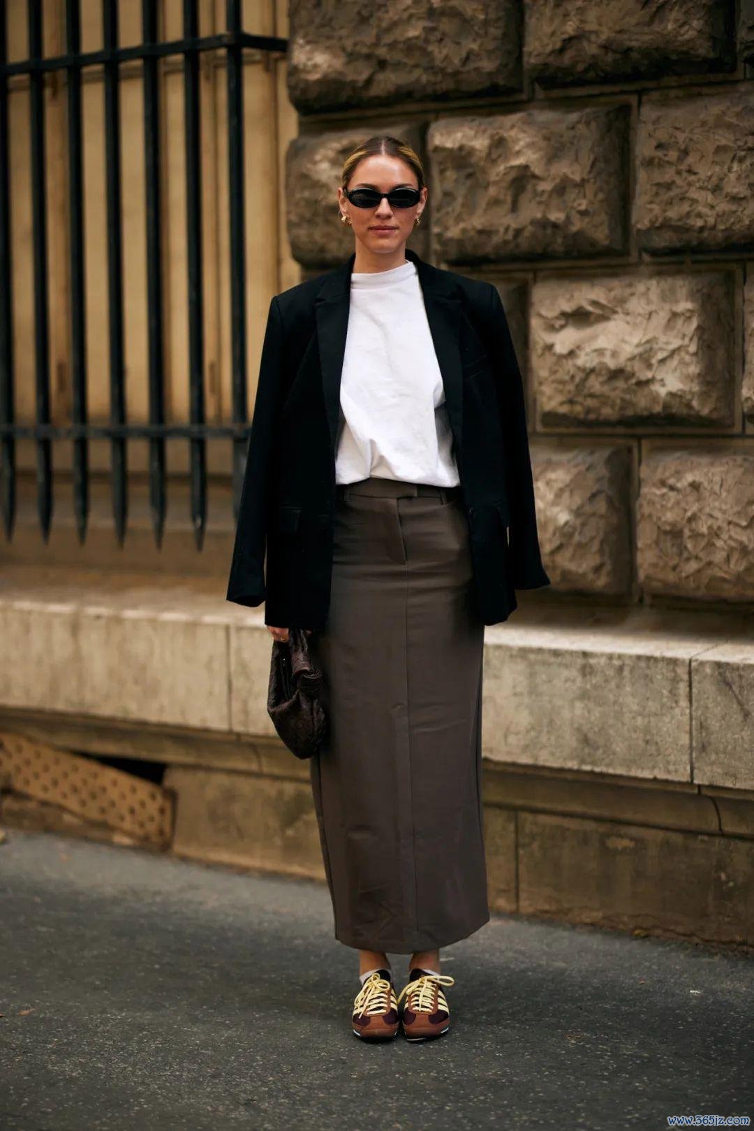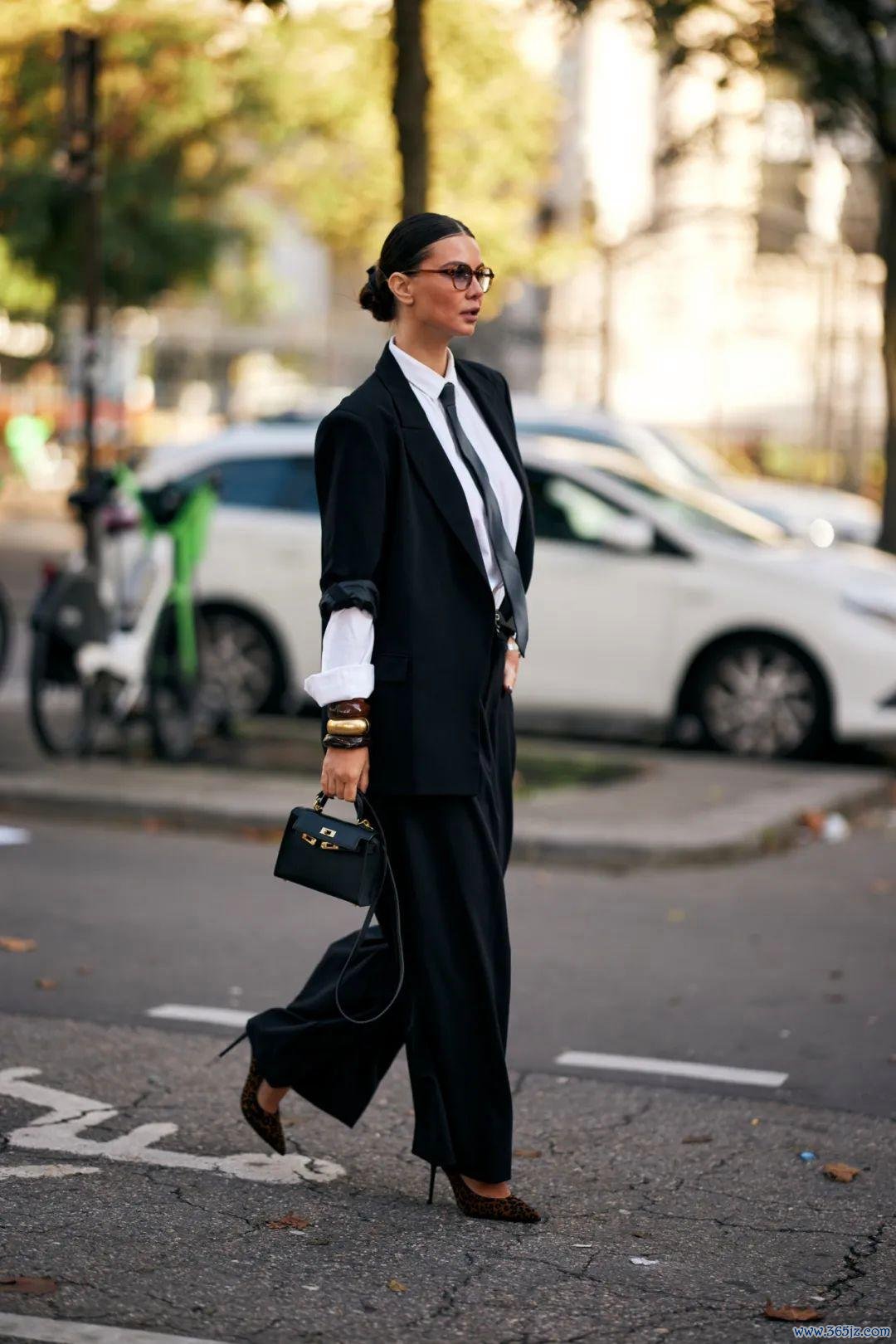思要愈加惹眼少量,不妨给玄色西装搭配彩色系半裙,与玄色西装造成激烈反差。