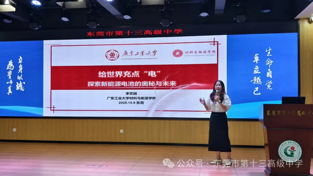 10月9日,一场别开生面的讲座在东莞市第十三高等中学(下称“东莞十三中”)举行。广东工业大学副老师李艺娟以《给世界充点“电”——探索新能源电板的微妙与改日》为主题,为学生们开启了一场科学探索之旅。
